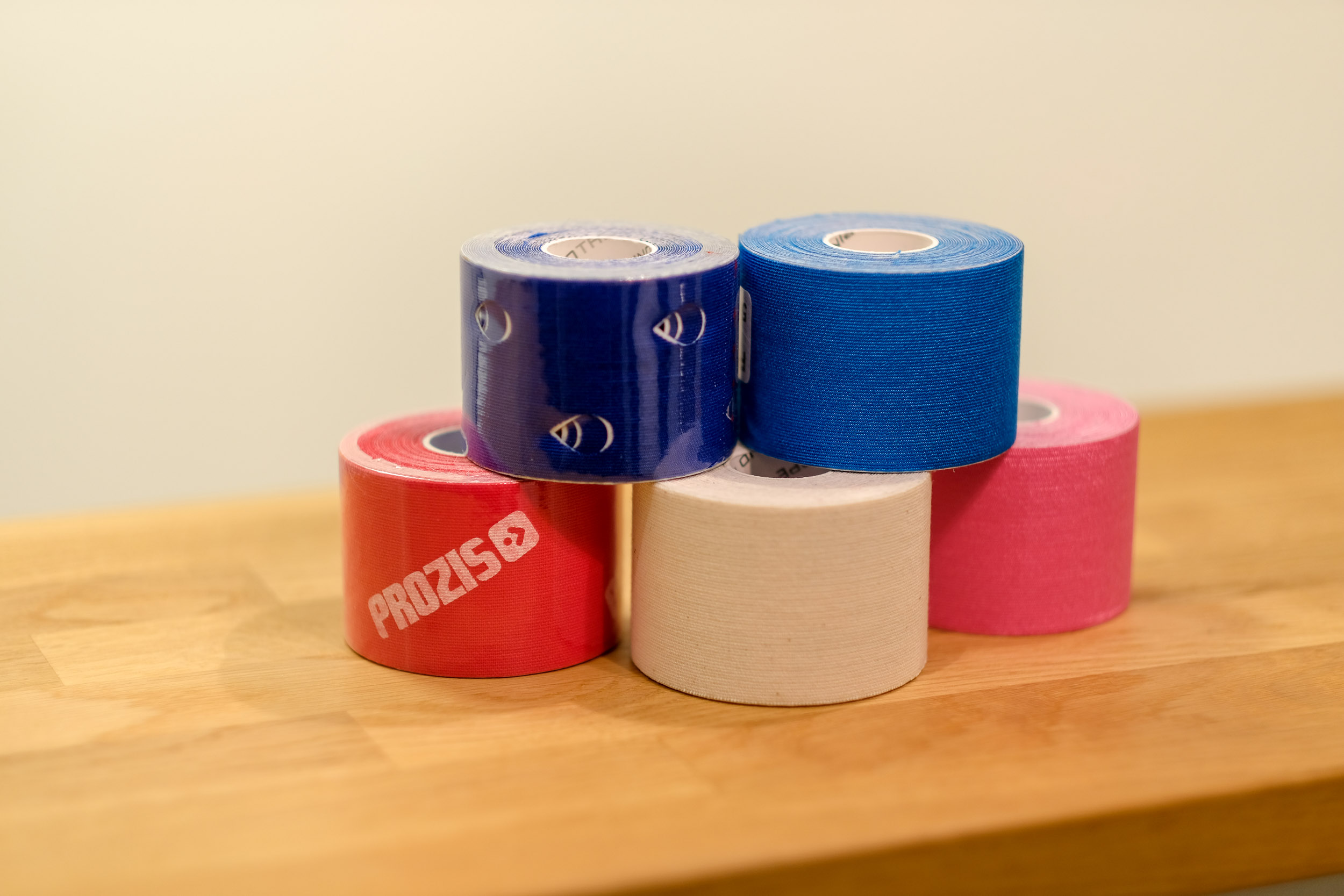 Beim kinesiologischem Tapen verwendet man ein elastisches Therapie- Klebeband, welches auf die Haut appliziert wird. Kinesiologisches Tape wird oft nach Sportverletzungen und bei Schmerzen eingesetzt. Durch seine Elastizität wirkt es auf die Körperwahrnehmung, kann den Lymphfluss fördern, Bewegungen unterstützen, Schmerzen verringern oder als bewegungseinschränkendes und somit schützendes Tape angelegt werden. Das Tape gewährt durch seine geringe Dicke einen hohen Tragekomfort und ist zudem atmungsaktiv.